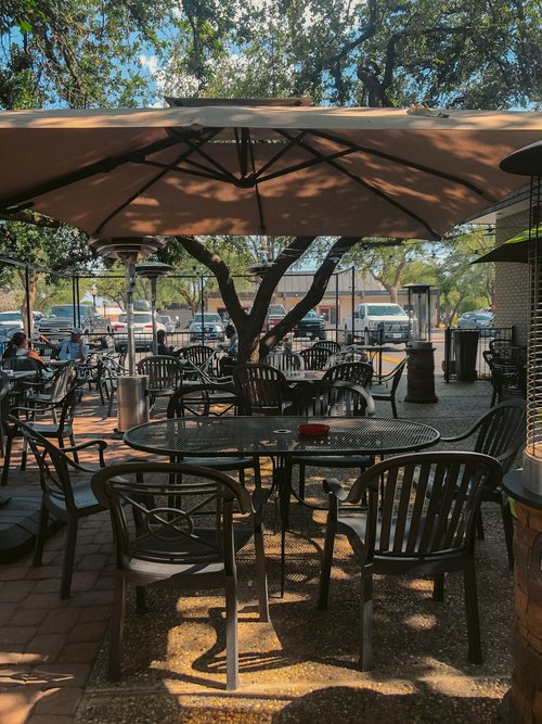 The venue’s outdoor seating area is particularly inviting, allowing patrons to bask in the Texan sun or enjoy a cozy evening under the stars while savoring their chosen beverages.